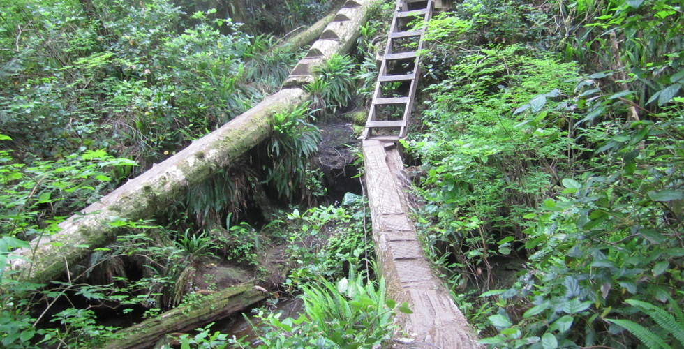 Day 5 – This would be our second morning, where we packed the tents a bit damp from a morning mist. And we would not experience any other rain, mist, or such for the remainder of the trip. In contrast to the previous day, being nearly exclusively on the beach, today's route was all inland, forest and marshes. John had warned me that today might be the most physically challenging day of the trip—the WCT's mecca for ladders. However, the day's first major landmark was a massive suspension bridge over Logan Creek. An engineering marvel and makes you think about what it took to get it there and installed. The route had been challenging already, with many twists and turns, stepping up and over roots and logs. There were very few opportunities to get a rhythm started or to continue one. Everything seemed to want to break your pace. Also, when you attach poles to your backpack, ensure they don't stick out beyond your backpack or head. If they do, they will catch onto every tree and tug you back countless times, attempting to drag you to the ground (they were unsuccessful but came close). Then came the ladders. Not that going up or down the ladders for me was the challenge I feared they might have been before the hike, but the number of ladders and elevation lost or gained by the ladders. I read beforehand that there are sections of ladders that, as far as you can see, its ladders. Well, that wasn't an exaggeration. There had been one or two shorter ladder sections earlier in the day, but then we arrived at Cullite Creek. This would be the biggest down-climb section we had yet to take on. It's impressive how long you spend on the ladders to simply walk a few metres across a tiny creek (or at least when we did it, again, there was a cable car but no need for it this trip) before climbing back up the gorge. Then only about a kilometre further down the trail, you do it all again for Sandstone Creek, and this one's nearly as big as well. At least we got a little break from ladders before the next down-climb at Camper Creek. But in between were some of the biggest up-and-overs of downed trees, roots, and steep inclines. There were bridges, boardwalks, fallen logs, (short) step ladders, and steps made from fallen trees. And combinations of all of them. It was never dull, that is for sure. In a few cases, multiple routes or lines through a particular section. Once, I chose to walk over a log suspended a couple of metres over the ground while John walked down, under the same log, and up the other side. We made the final descent down to Camper Creek and to that evening's campsite at Camper Bay (with the creek as low as it was, I got a much bigger cove vibe than a bay vibe). A 'well-sheltered' campsite also acted as a funnel for the wind; it was the first time we stacked the tents from blowing away—our shortest day at about 10.7km, which we did in about three and a half hours.